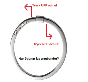 Armbandet är öppningsbart och låses som bilden visas genom att trycka ner en sida upp upp den andra.